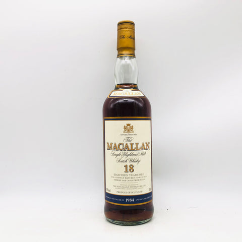 「マッカラン 18年 1984」は、シングルモルトのロールスロイスと称されるマッカランの中でも、特に評価の高いヴィンテージボトルです。1984年に蒸溜された原酒を18年以上熟成し、シェリー樽由来の豊潤な個性を余すことなく表現しています。現行品とは一線を画す、クラシカルなマッカランの魅力を色濃く残した一本です。